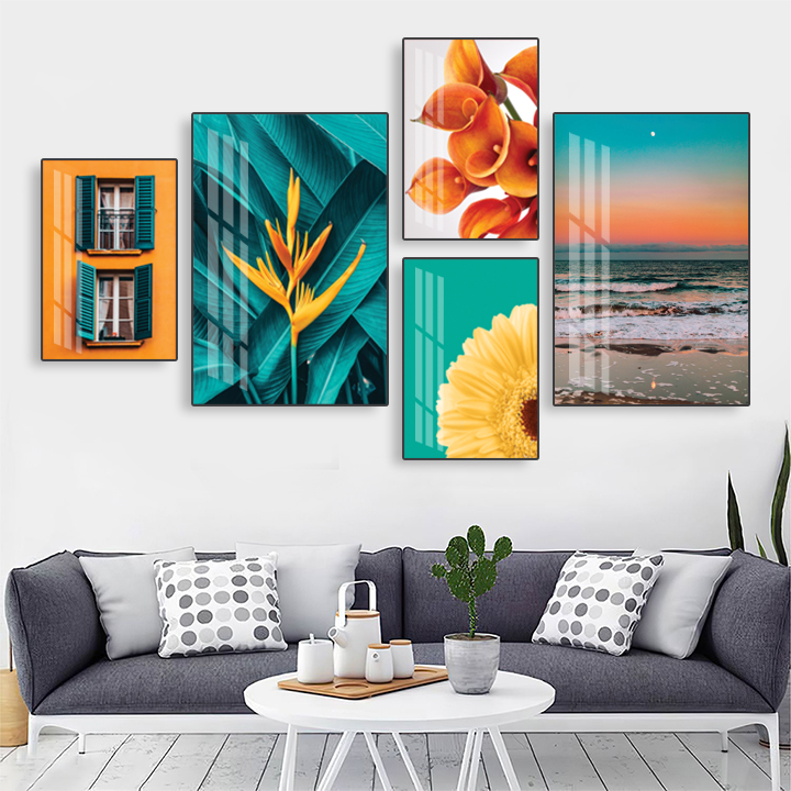 Sản phẩm gồm 5 bức tranh (có khung viền chắc chắn) kèm ảnh như mẫu