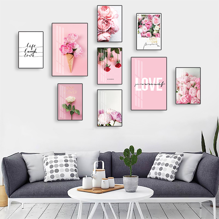 Set 9 tranh treo tường phù hợp làm quà tặng, treo phòng khách, phòng ngủ của các bạn nữ thì hết ý ạ.